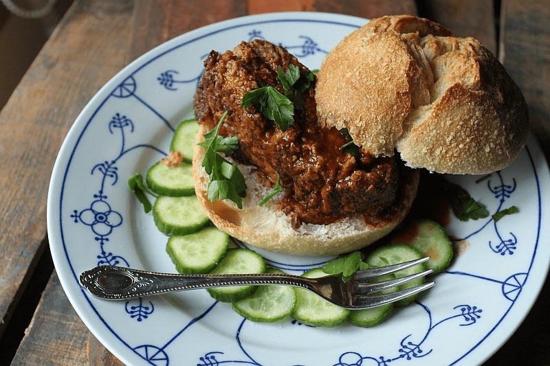 Ein Imbiss aus einem Brötchen mit Schweinefleisch, Soßen und eingelegten Gurken war in Hamburg äußerst beliebt und wurde „Rundstück warm“ genannt. Ursprünglich wurde das Rundstück warm mit nur einer Brötchenhälfte zubereitet. Doch das Essen solcher Gerichte war besonders während der Reise unpraktisch. Daher kam man in Hamburg auf die Idee, das Brötchen mit einer zweiten Hälfte zu bedecken. Stimmen Sie zu, dass dies dem Hamburger entspricht, wie wir ihn heute kennen.